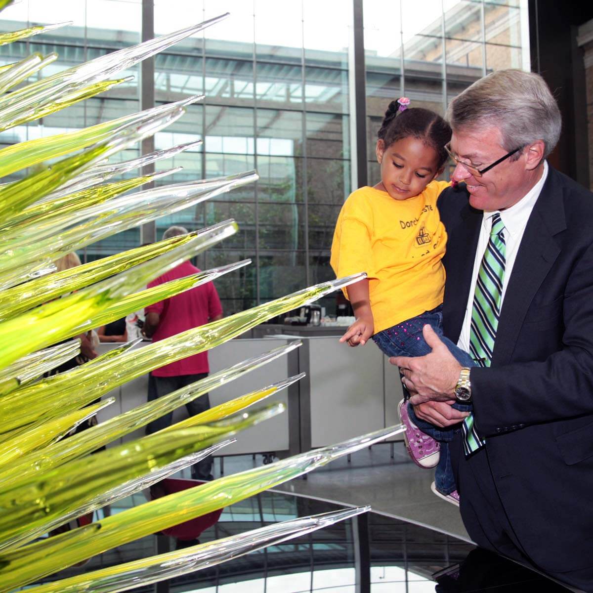 In 2011 Highland Street Foundation sponsored the acclaimed Chihuly: Through the Looking Glass exhibition. This exhibition featured the work of world renowned glass blower Dale Chihuly and its centerpiece was the 42-foot-tall Lime Green Icicle Tower. The exhibition was one of the most attended in MFA history. After the exhibition the popularity of the tower was so immense that the MFA raised funds to purchase it from the artist. It now has a permanent home in the museum’s courtyard.